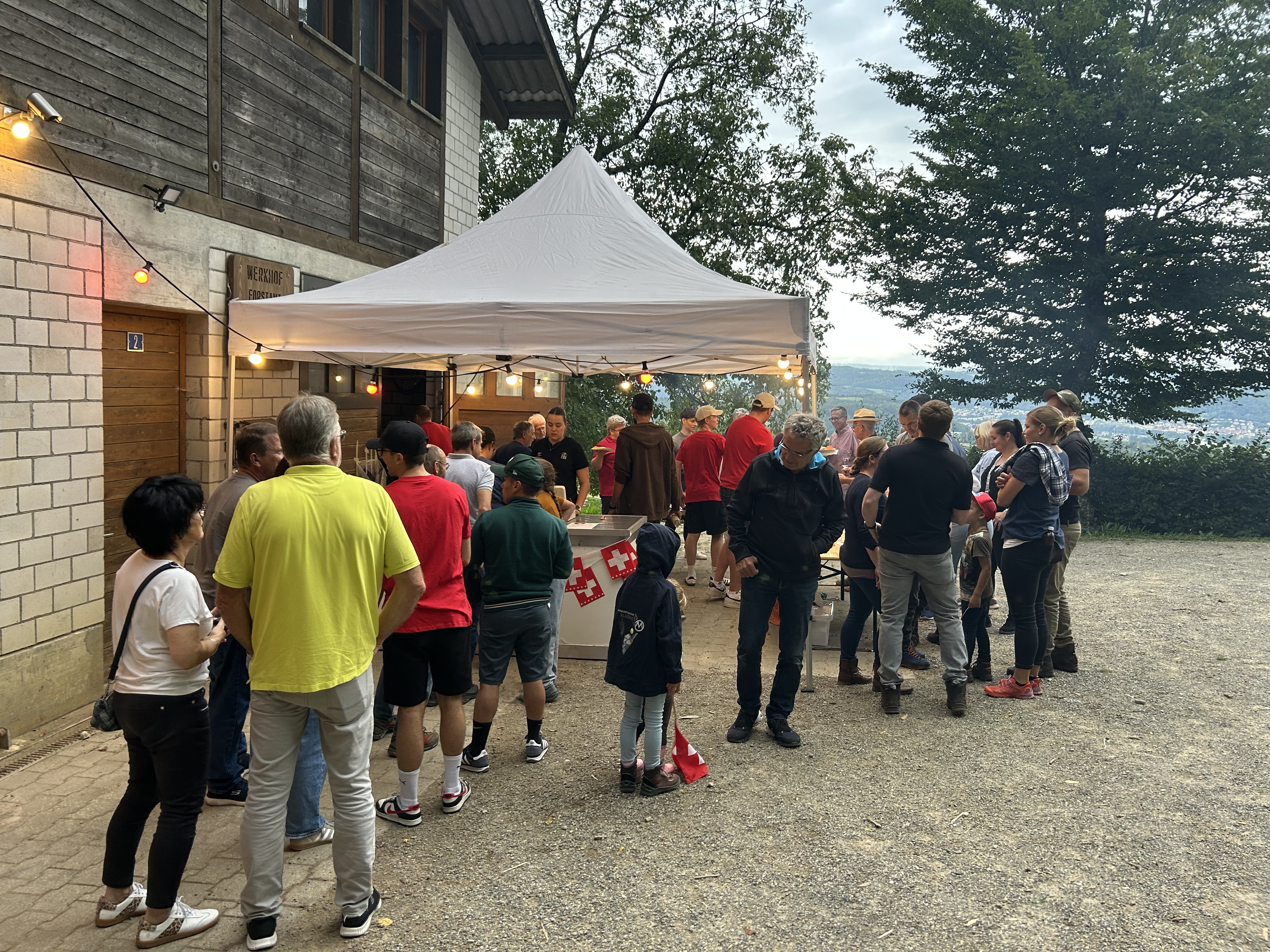 Schwarzwäldertorte, Zuger Kirschtorte oder Crèmeschnitten: Das Dessertbüffet geizte nicht mit Verlockungen. Besonders beliebt bei den Kids war ein Lebkuchen mit vielen bunten Smarties. Und für eine Überraschung war an diesem Abend auch gesorgt: Plötzlich waren nämlich Alphornklänge aus dem Wald zu hören. Die Gäste spitzten die Ohren. Wer war der Bläser? Später sprach es sich herum: Es war der Klingnauer Beat Bolliger.